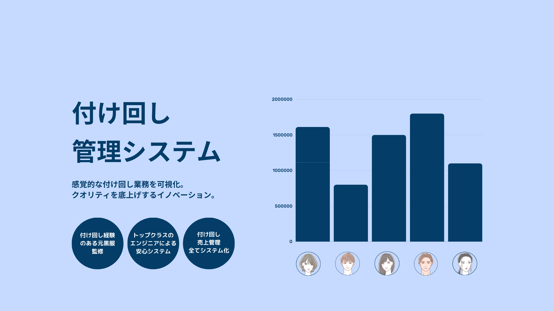 ○タブレット注文 (タブレット支給あり) ○他店舗状況確認 ○予約管理機能 ○テーブル管理機能 ○売上管理機能 ○経費管理機能 ○給引き履歴閲覧 ○顧客管理機能 ○売掛管理機能 ○レジ金管理機機能 |
